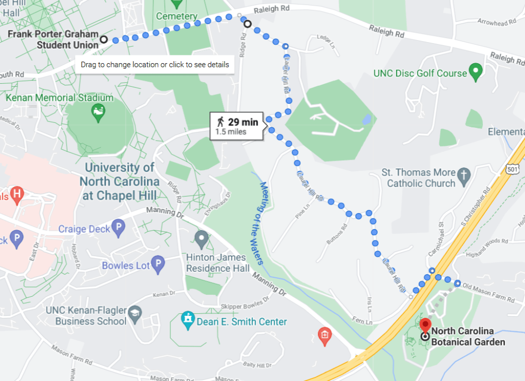 Luckily, as long as it’s not the weekend, you can take several of the famous free Chapel Hill/Carrboro buses there.
