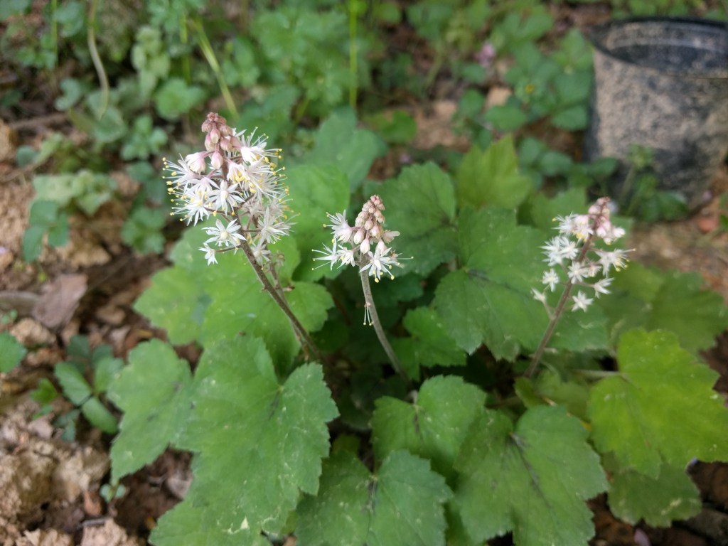 These bloom in April. They last just a few weeks, but are lovely and so cute. It doesn’t come across very well in the picture, but they have a delicate milky-pink blush. For the rest of the year, the leaves are very pretty. And they do pretty well in the shade. I think.