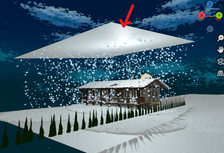 To make the snow, I am using the particle systems in Blender to release the snow. I have an emitter over my scene:
